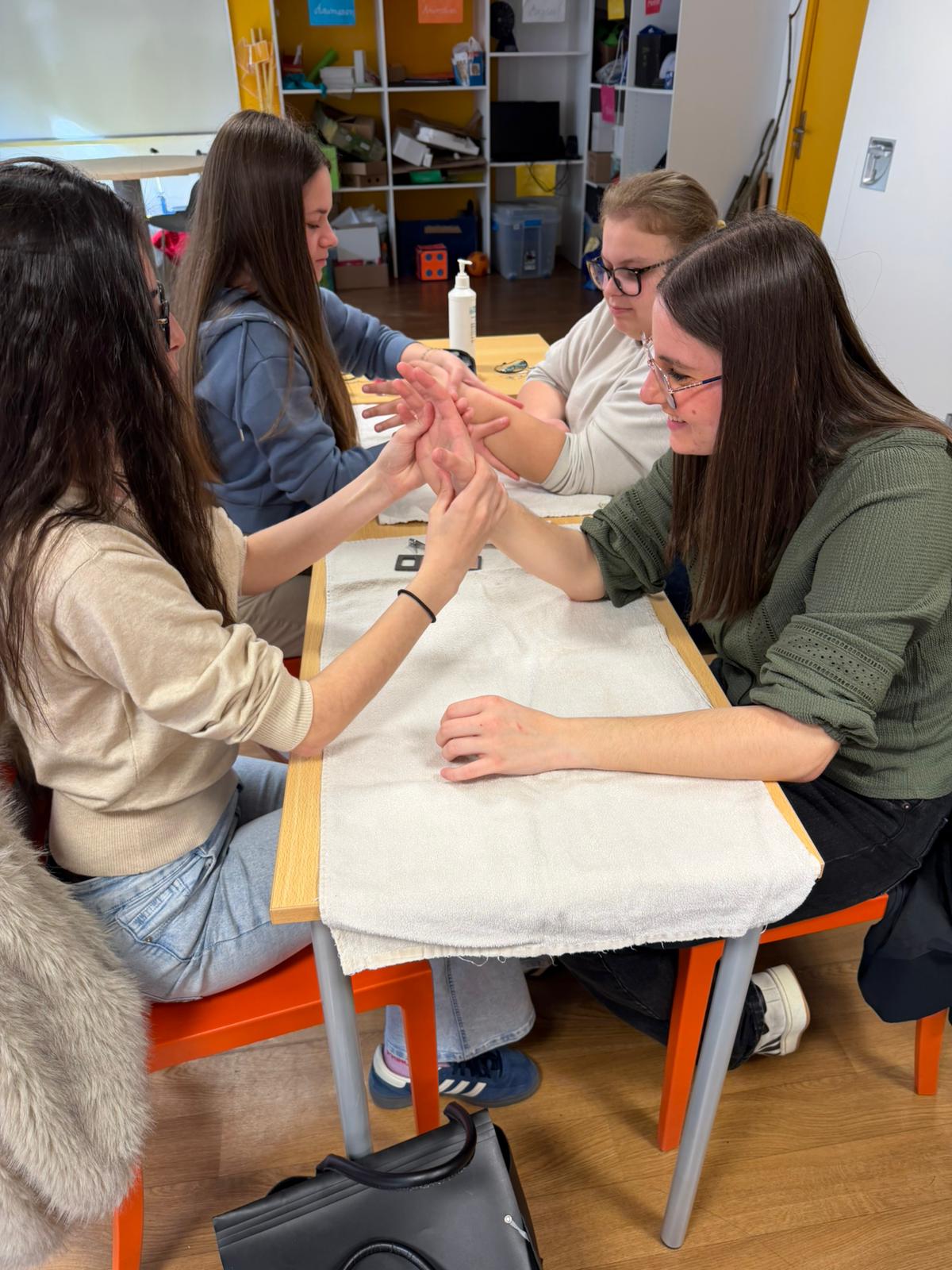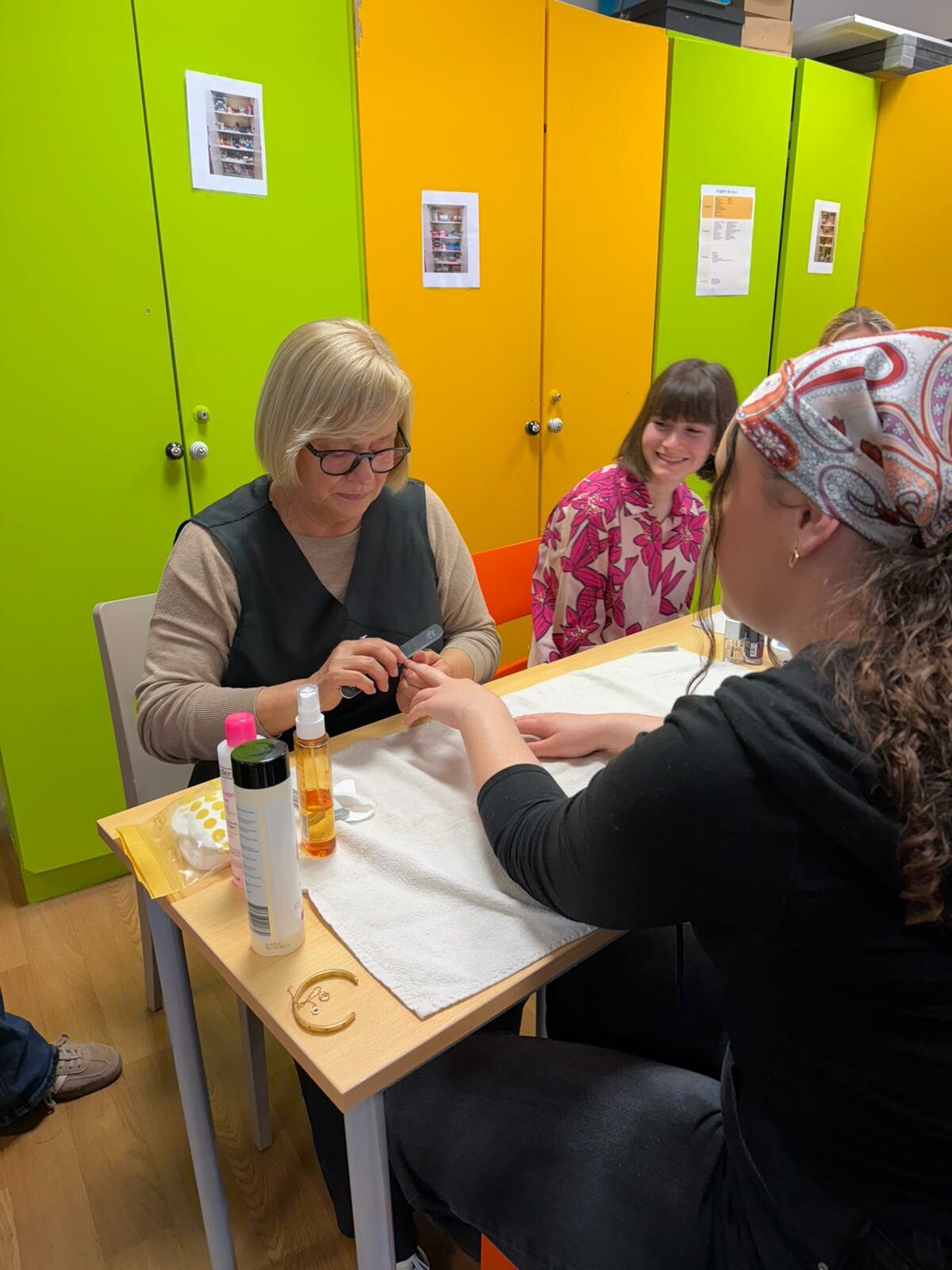 - massage des mains, pose de vernis et échanges autour des pratiques professionnelles.