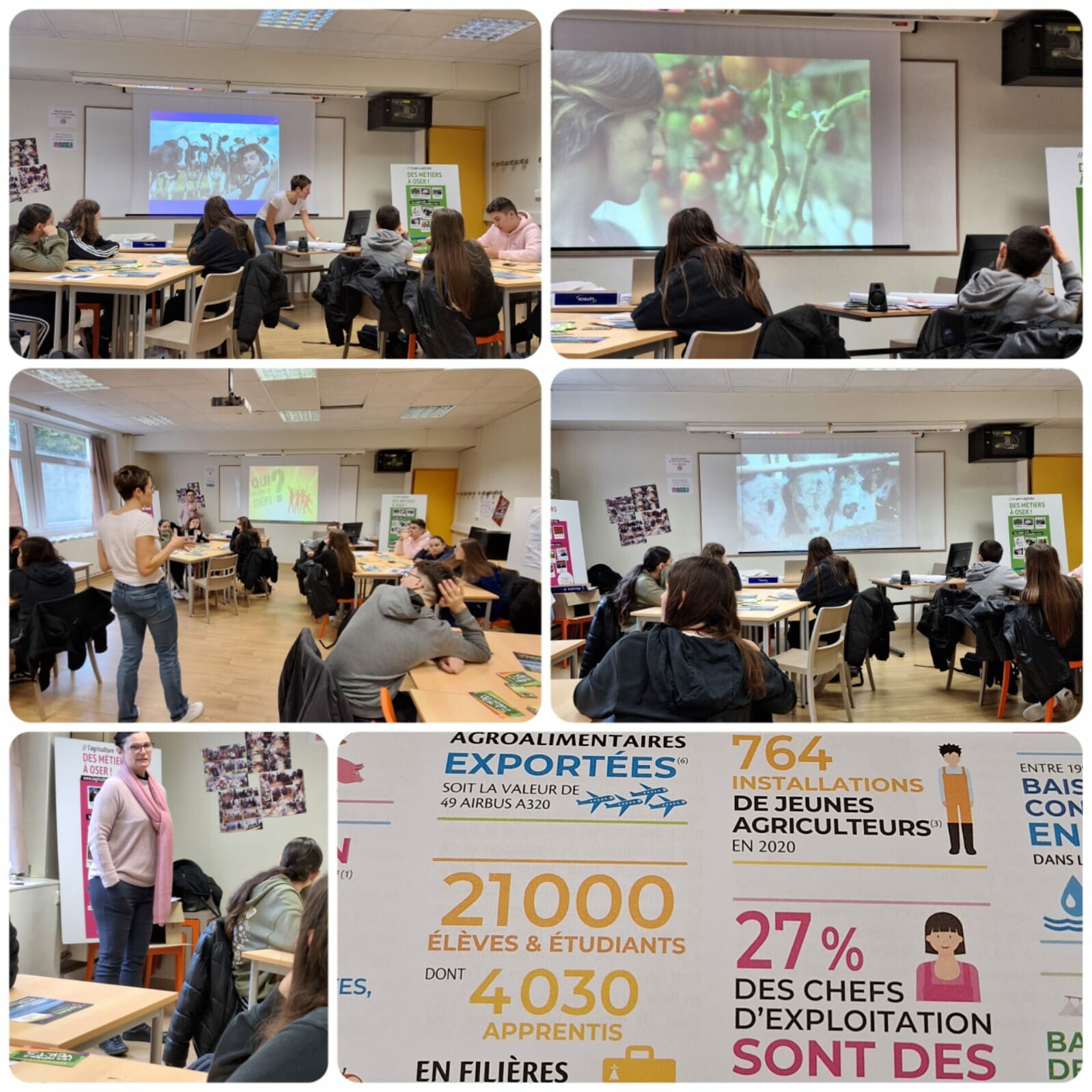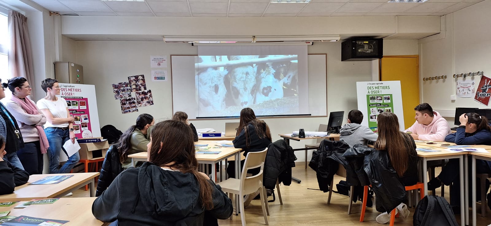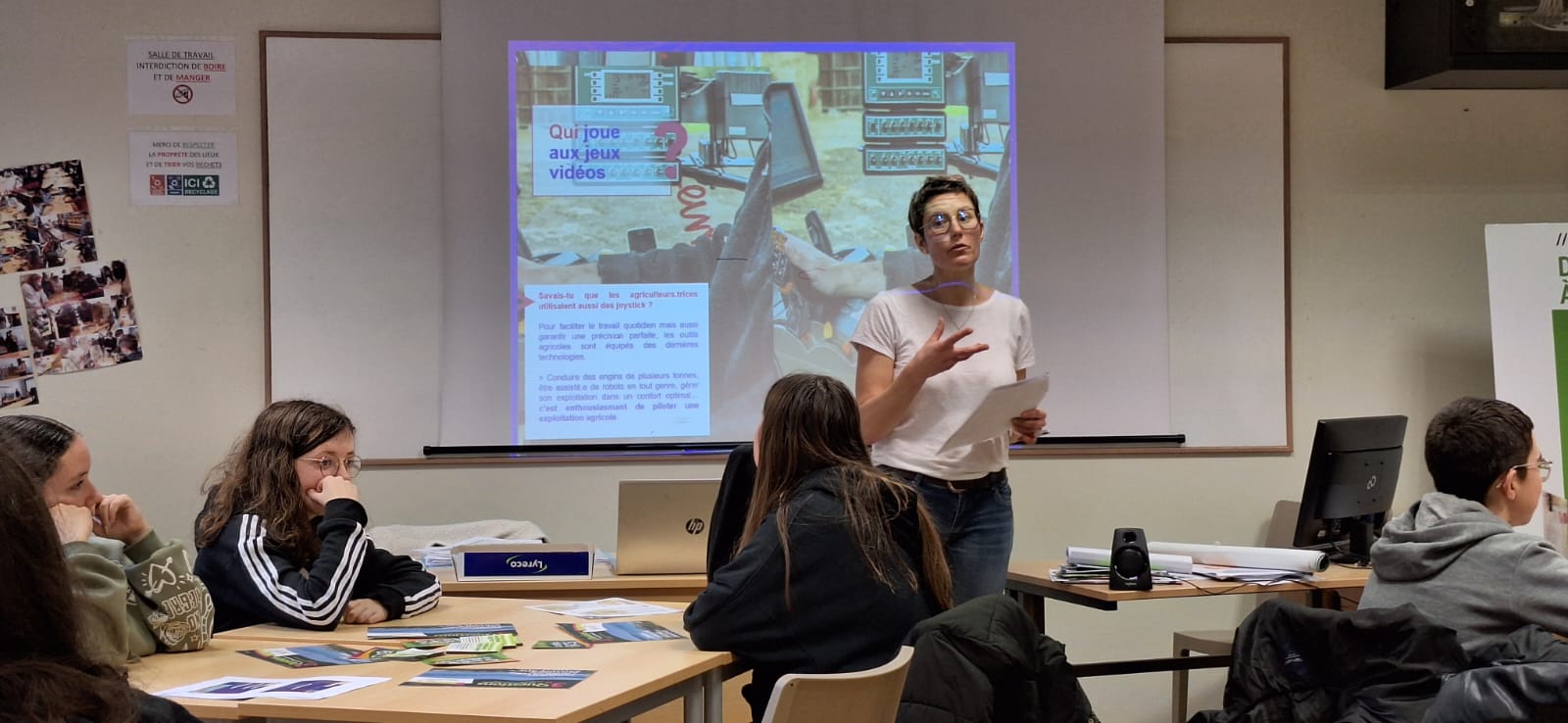 Les élèves de 3e ont eu la chance d'accueillir Mme Le Moine de la Chambre d'Agriculture pour une présentation passionnante sur les multiples métiers du secteur agricole