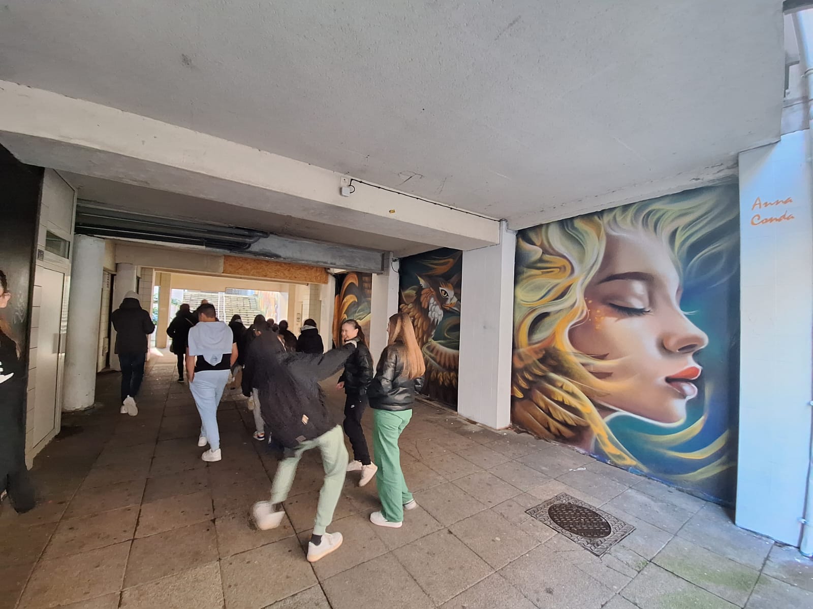 Guidés par des passionnés de street art, les élèves ont parcouru les rues de la ville, découvrant des œuvres d'art qui transforment les murs en toiles vivantes. Chaque œuvre explorée a été l'occasion de discussions sur l'histoire, les techniques utilisées, et les messages véhiculés par ces expressions artistiques urbaines.