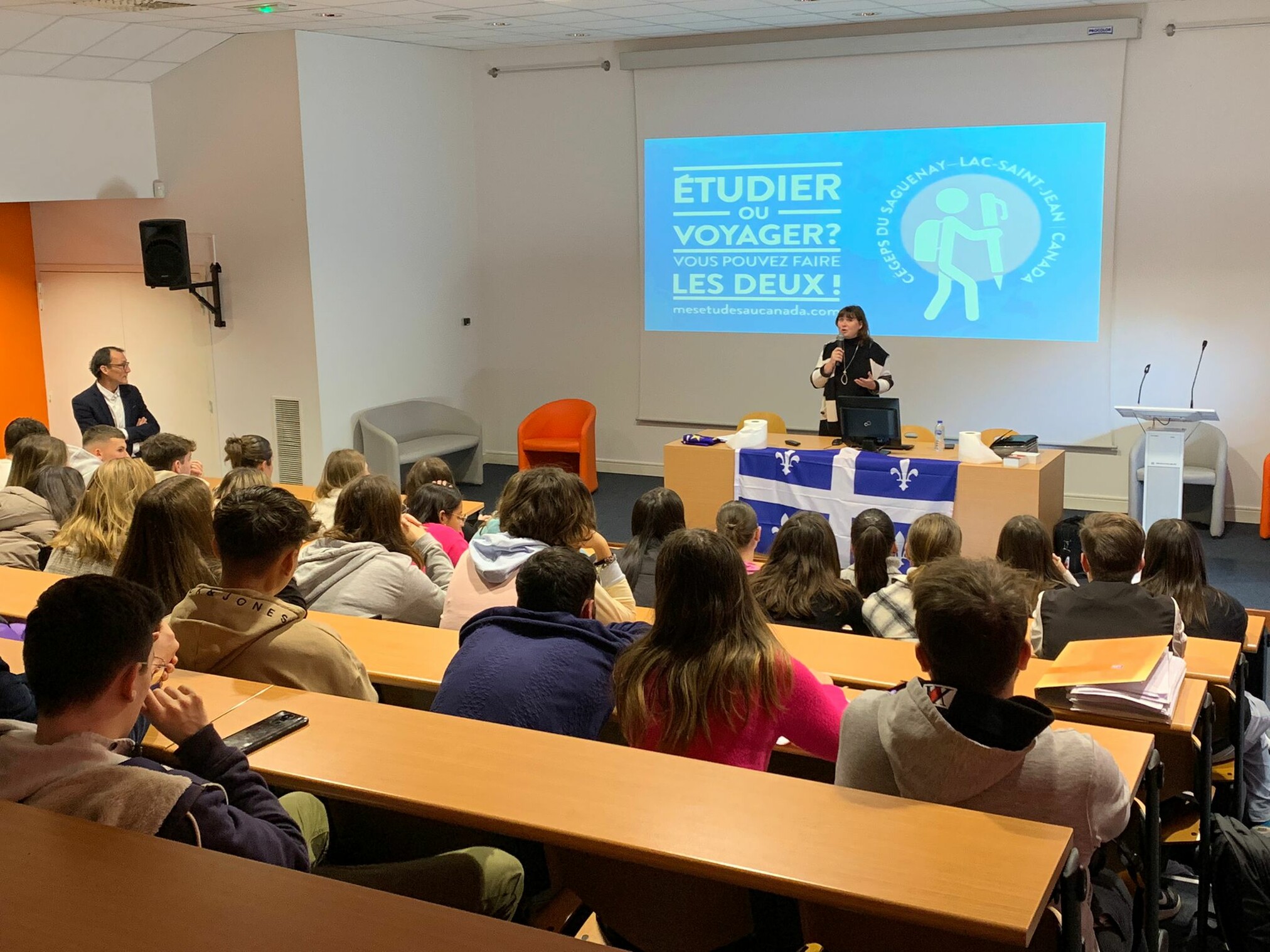 Intervention de Nathalie Landry intervenante dans les cégeps au Québec. L’objectif était de présenter aux 1ères et terminales BAC PRO Assp et Animation les possibilités de poursuivre des études supérieures dans différents cégeps en lien avec leurs formations. Il est ressorti de cette présentation une poursuite d’études qui apporte une expérience internationale unique, des formations de qualité avec un accompagnement personnalisé. Plusieurs élèves de terminale ont été séduits par cette ouverture à l’international et ont déjà engagé des démarches.