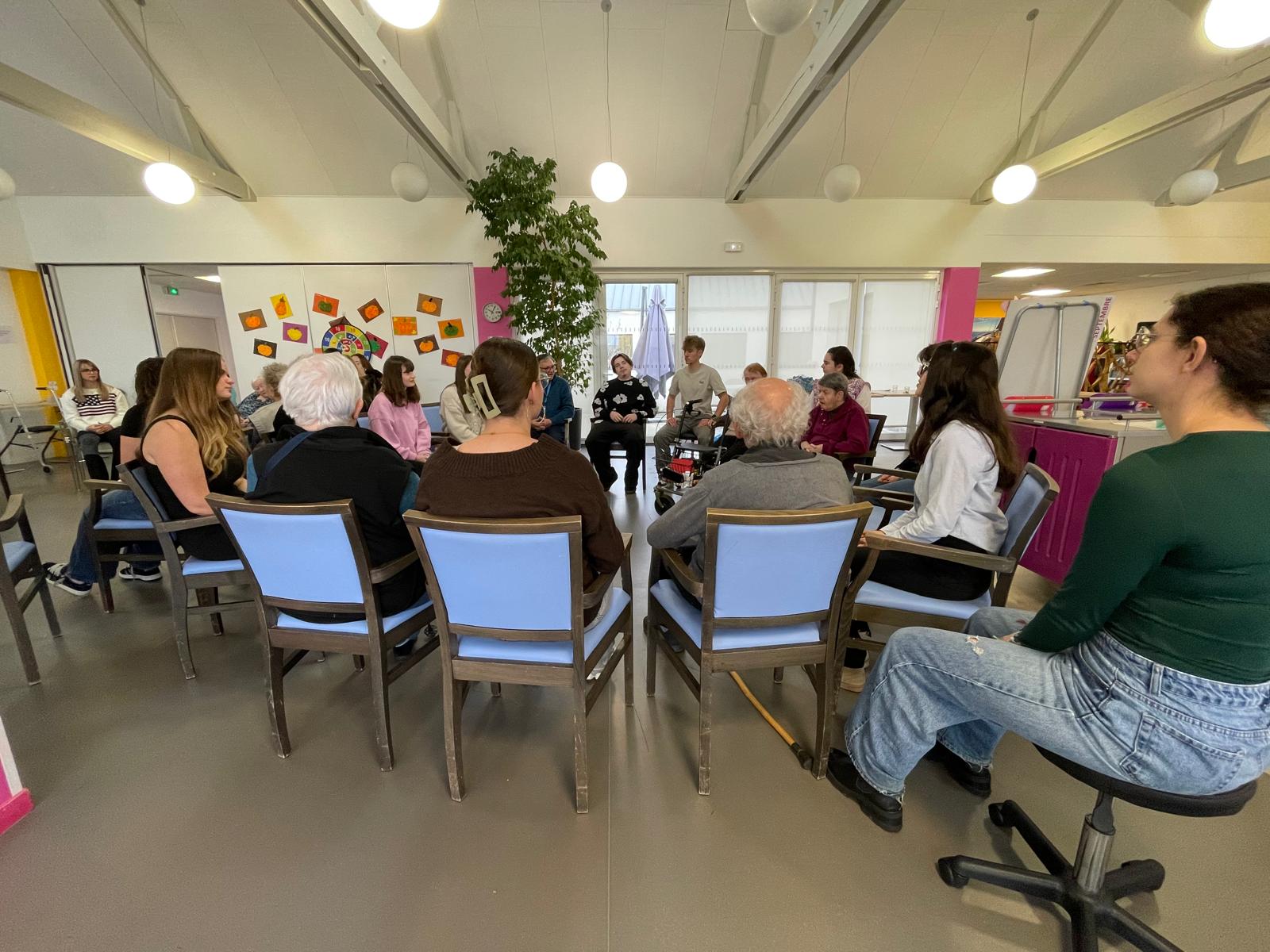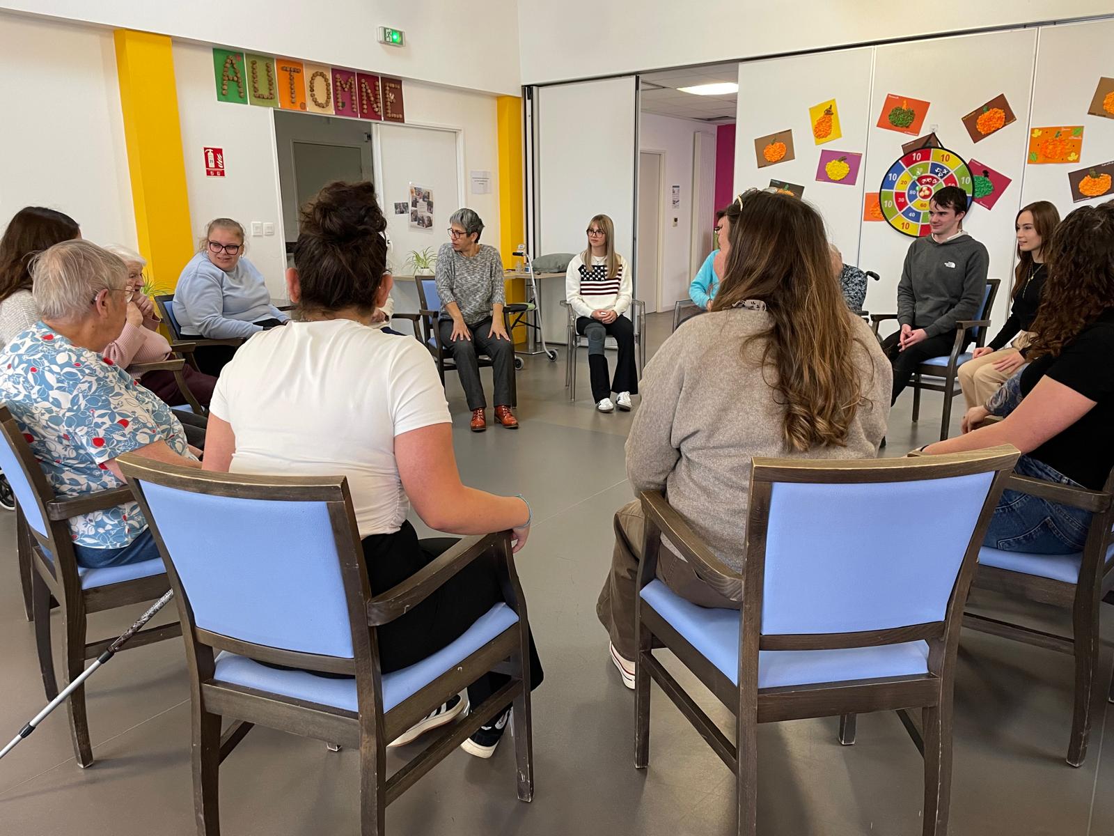 Après une formation au lycée dispensée par Jade, animatrice en activités physiques adaptées, les élèves de Terminale Animation ont pu mettre en pratique leurs nouvelles compétences à l’Ehpad Les Champs au Duc.